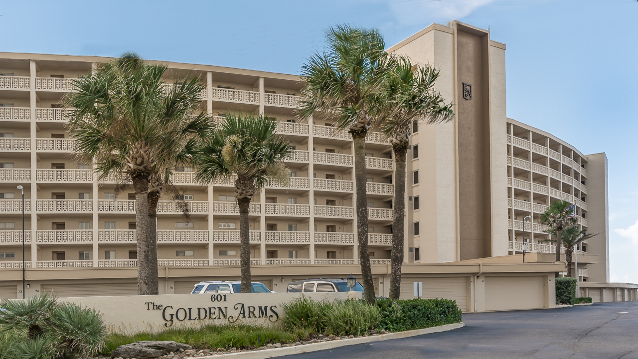 Welcome to one of the premier oceanfront condominiums on one of the finest beaches in Florida. Located in New Smyrna Beach, The Golden Arms has 87 individual units, all with two bedrooms, two bathrooms and large balconies to take in the sights and sounds of the beach. All units are individually owned, with some units available for weekly/monthly rentals. New Smyrna Beach offers 13 miles of pristine white sand beach where you can enjoy activities such as swimming, boating, surfing and fishing.